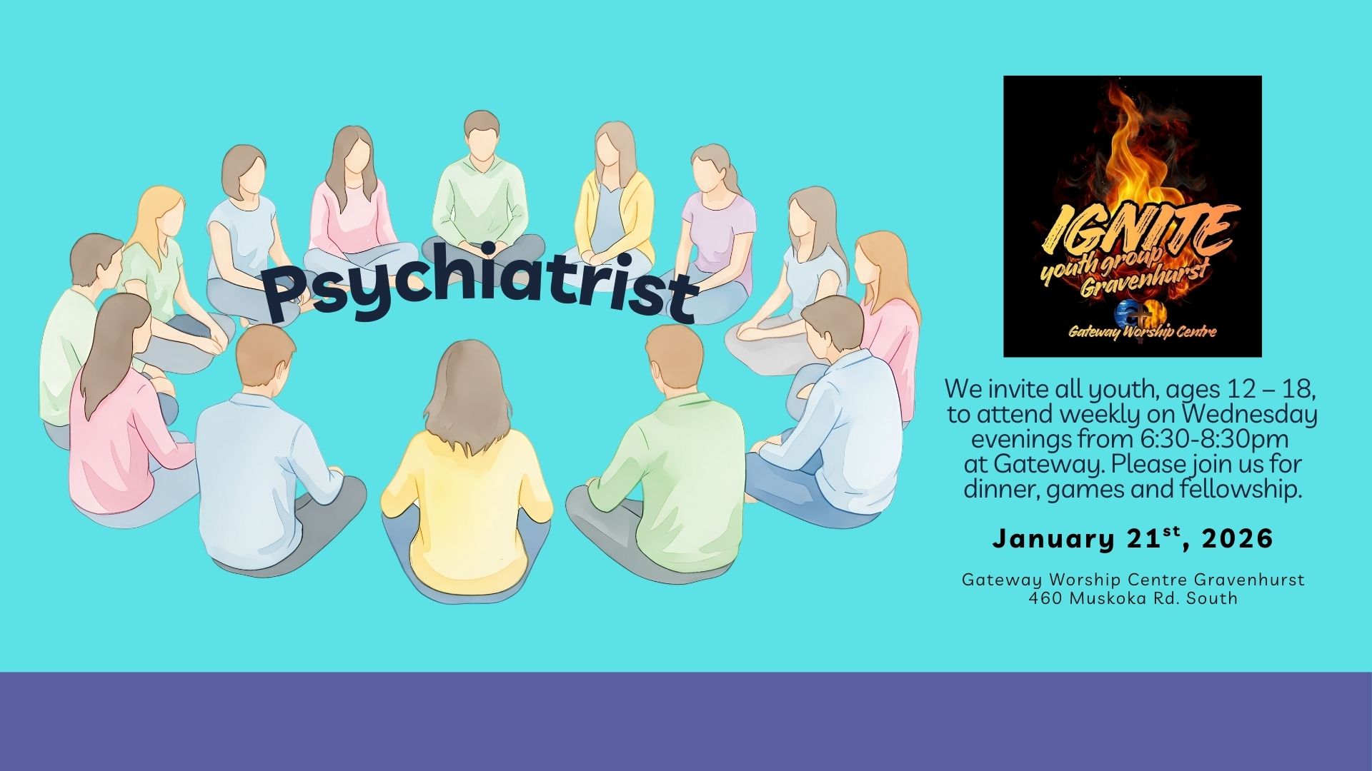 We invite all youth, ages 12 – 18, to attend weekly on Wednesday evenings from 6:30-8:30pm at Gateway. Please join us for dinner, games and fellowship.
